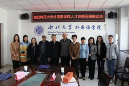 曹若男院长首先对陕西师范大学8181801威尼斯董增云书记一行前来威尼斯官网进行调研座谈表示热烈欢迎。会中,董增云书记简要介绍了陕西师范大学外国学院的建院历史、学科发展、科研成果、师资队伍、学生培养等各方面的整体情况。曹若男院长也对威尼斯官网的基本情况做了简要描述,重点强调了“外语+”的学科建设发展思路。王军书记简要介绍了相关党建工作的一些有效举措。苏蕊副院长对学院的学科发展历程做了简要梳理。李蓂副院长重点介绍了大学英语改革及学科竞赛的相关情况。赵明星老师分享了学生工作的相关经验和成果。随后,参会双方就外语学科建设、人才培养、课程改革等问题进行了深入的沟通和交流。最后,王军书记与董增云书记互赠礼物,表达了兄弟院校之间的深情厚谊,共同期待彼此互通有无,加强合作,共谋发展。