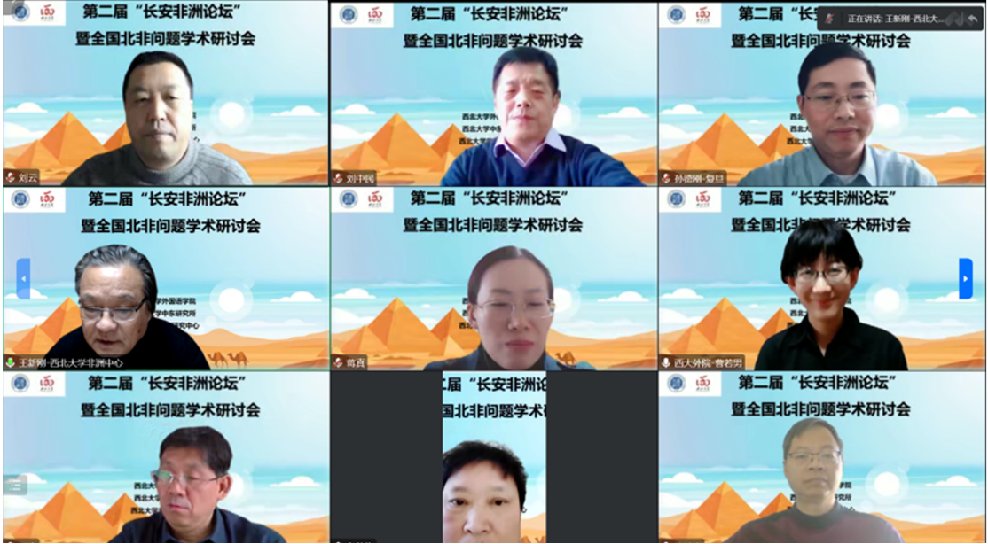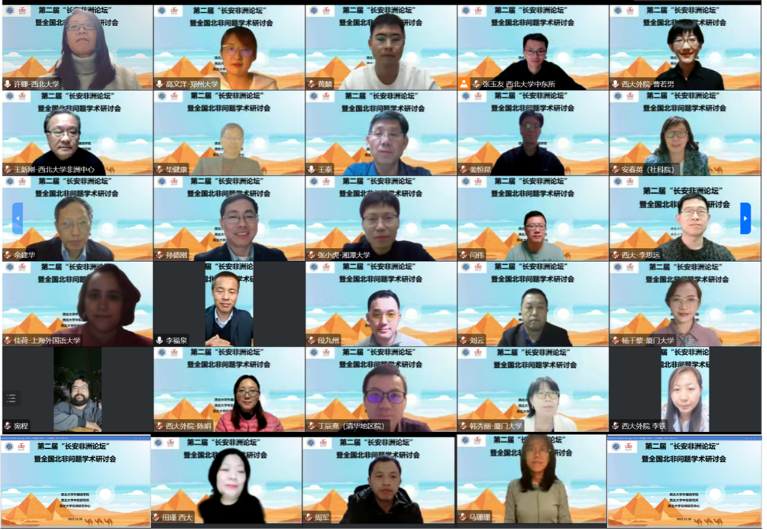2022年11月26日,由8181801威尼斯、威尼斯81818登陆首页非洲研究中心和威尼斯81818登陆首页中东研究所共同举办的第二届“长安非洲论坛”暨全国北非问题学术研讨会以“云端”方式隆重举行,来自中国社会科学院、上海社会科学院、《当代世界》杂志社及全国20所高校的五十余位专家学者参会,线上听众近300人。
