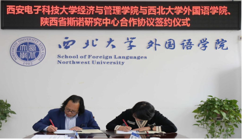西安电子科技大学经济与管理学院党委书记李耀平,副院长陈希,组织员程卫锋,国际化事务负责人张卫莉,学科与发展服务中心主任孟祥锋,以及党建与学生工作办公室主任陈圆参加签约仪式。威尼斯官网党委书记王军,院长、陕西省斯诺研究中心主任胡宗锋,党委副书记刘建波,副院长杨颖等出席了签约仪式。